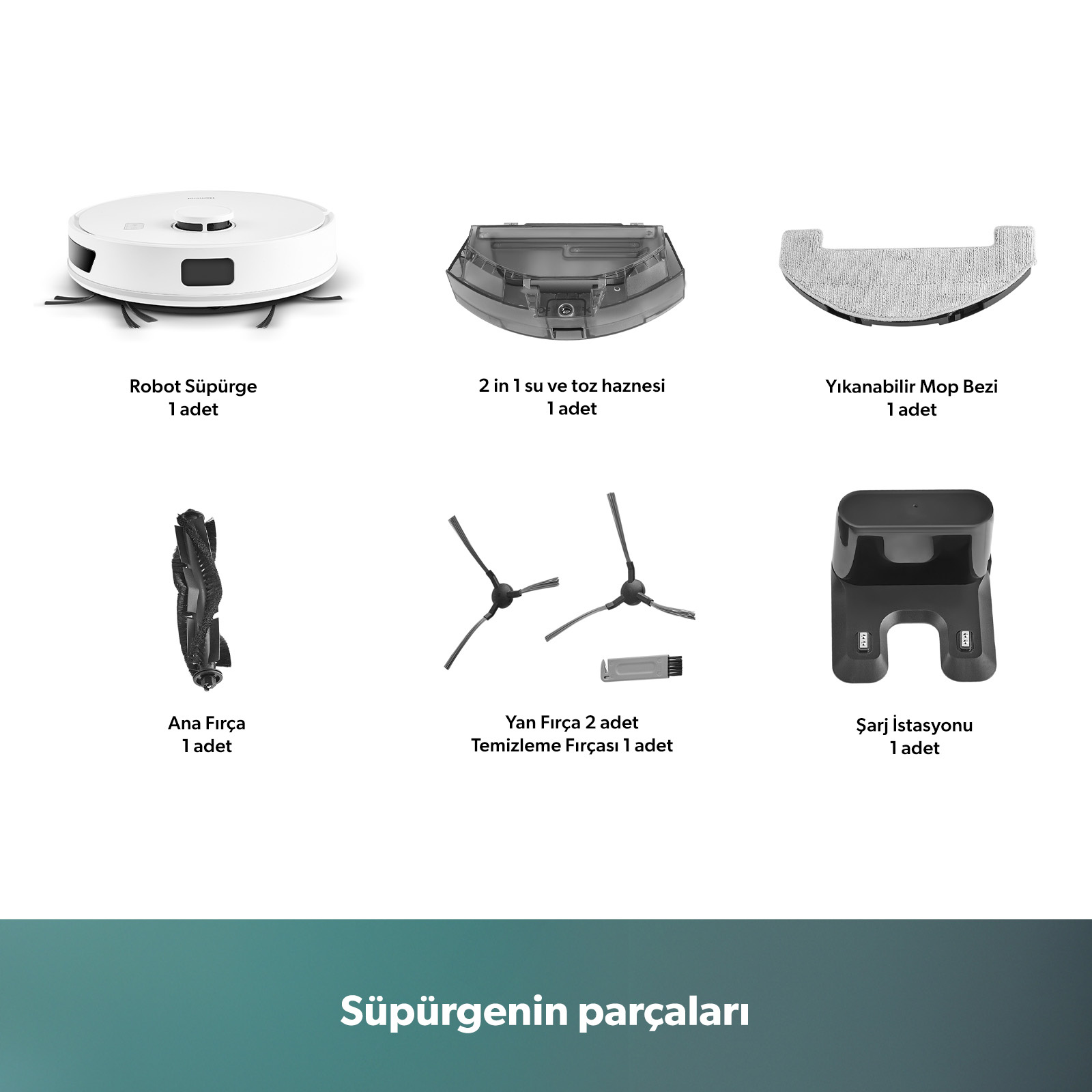 · Fonksiyon: Süpürme ve Silme (Islak Mop)