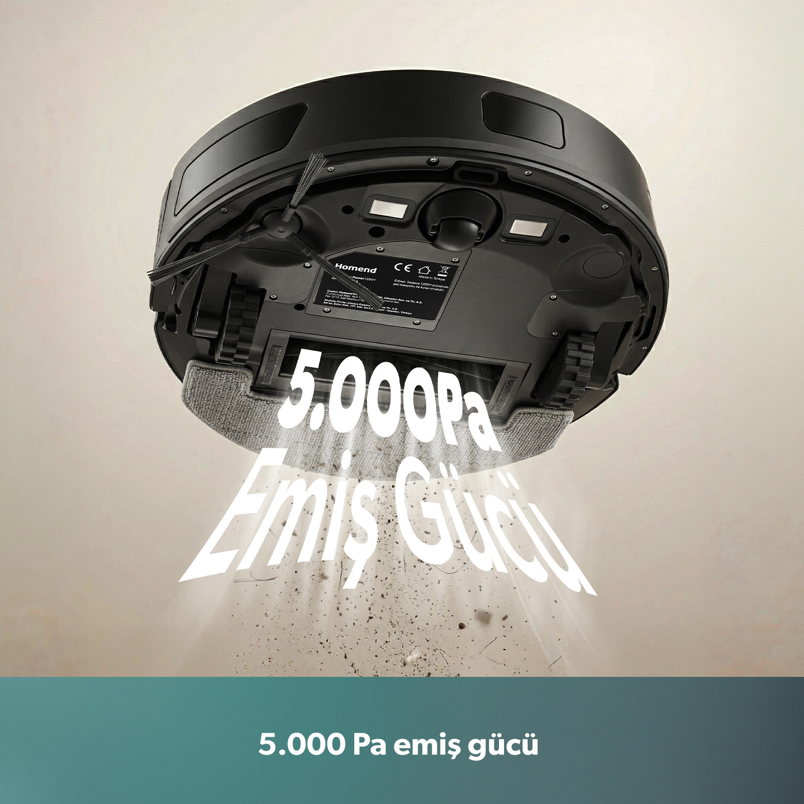 · Emiş Gücü: 3000 - 5000 Pa (Ayarlanabilir Yüksek Güç)