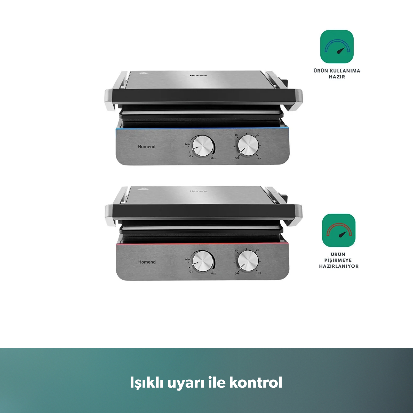 Elektrikli ızgaranızın ön yüzünde ısınana kadar kırmızı, ısındıktan sonra mavi ışık yanar. Böylece pişirmeye hazır olduğunu bir bakışta anlarsınız.