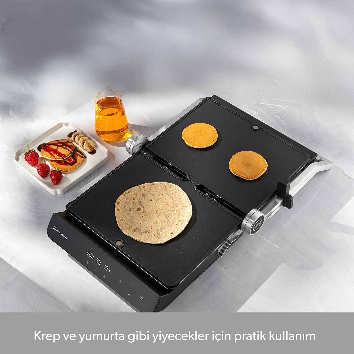 Çift taraflı kullanılabillen döküm plakalar sayesinde tost, hamburger, sıcak sandviç, yumurta ve ızgara yapabilirsiniz.
