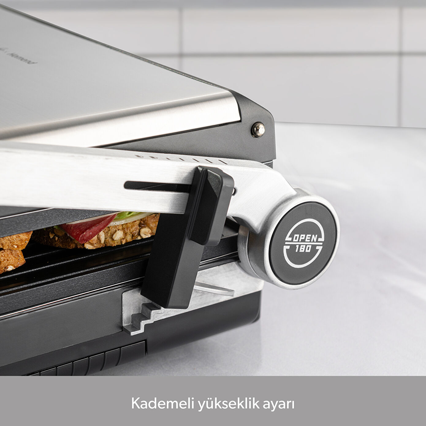 Tost makineniz, ızgara özelliğinin hakkını verir. 180 derece açılabilen plakalarını ayrı ayrı ısıtabilirsiniz. Örneğin bir plakada yüksek ısıda et ızgara yaparken, yandaki plakada düşük ısıda sebze ızgara yapabilirsiniz ya da sadece bir tarafı çalıştırabilirsiniz.
