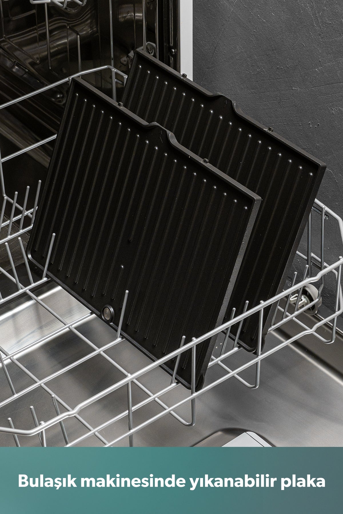 Çift taraflı kullanılabillen döküm plakalar sayesinde tost, hamburger, sıcak sandviç, yumurta ve ızgara yapabilirsiniz.