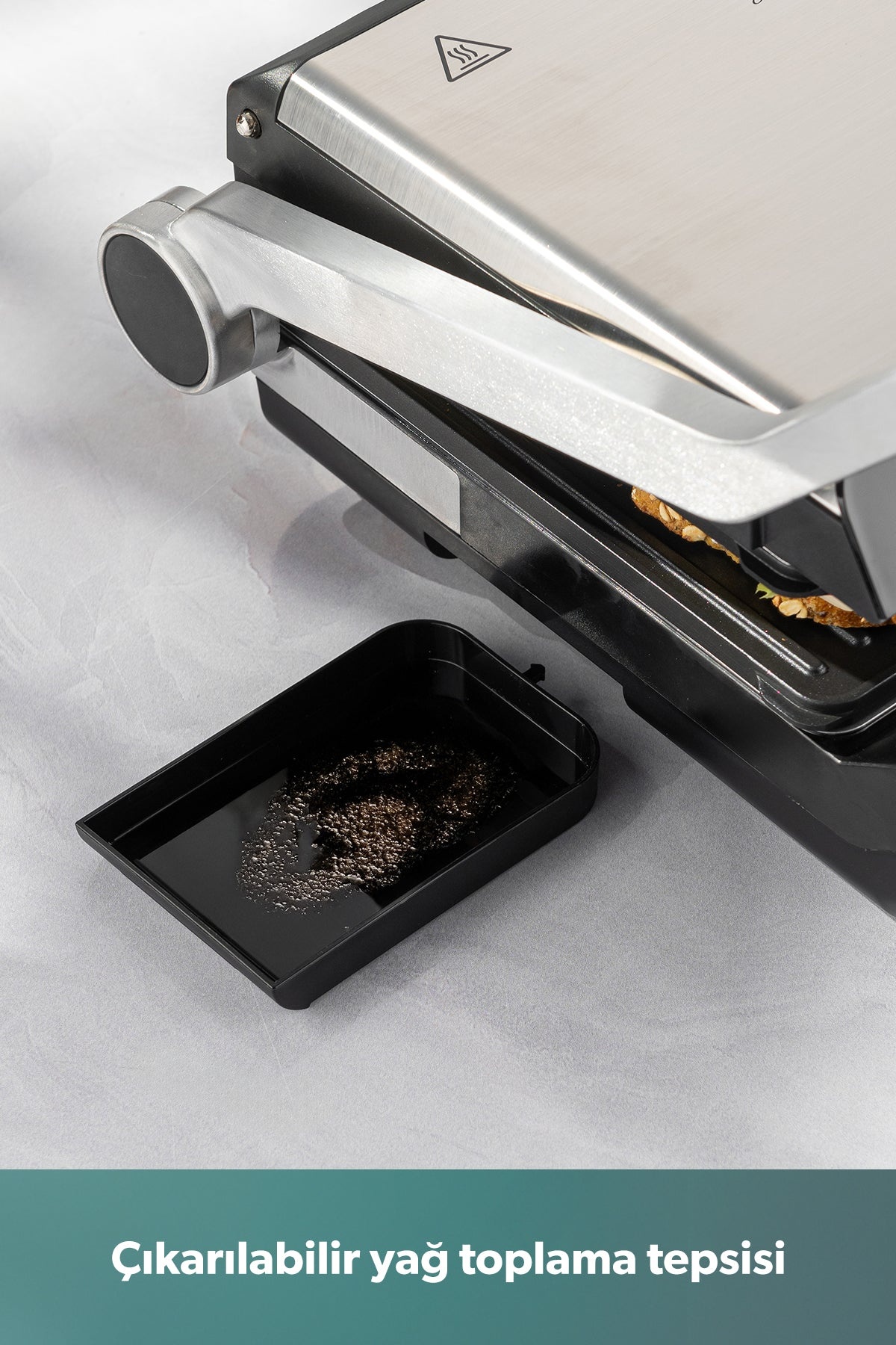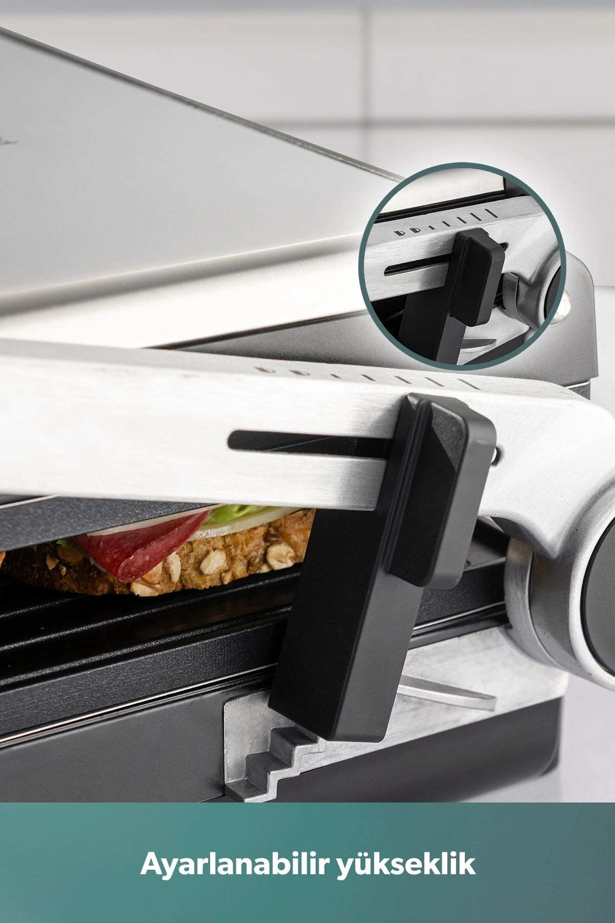 Tost makineniz, ızgara özelliğinin hakkını verir. 180 derece açılabilen plakalarını ayrı ayrı ısıtabilirsiniz. Örneğin bir plakada yüksek ısıda et ızgara yaparken, yandaki plakada düşük ısıda sebze ızgara yapabilirsiniz ya da sadece bir tarafı çalıştırabilirsiniz.