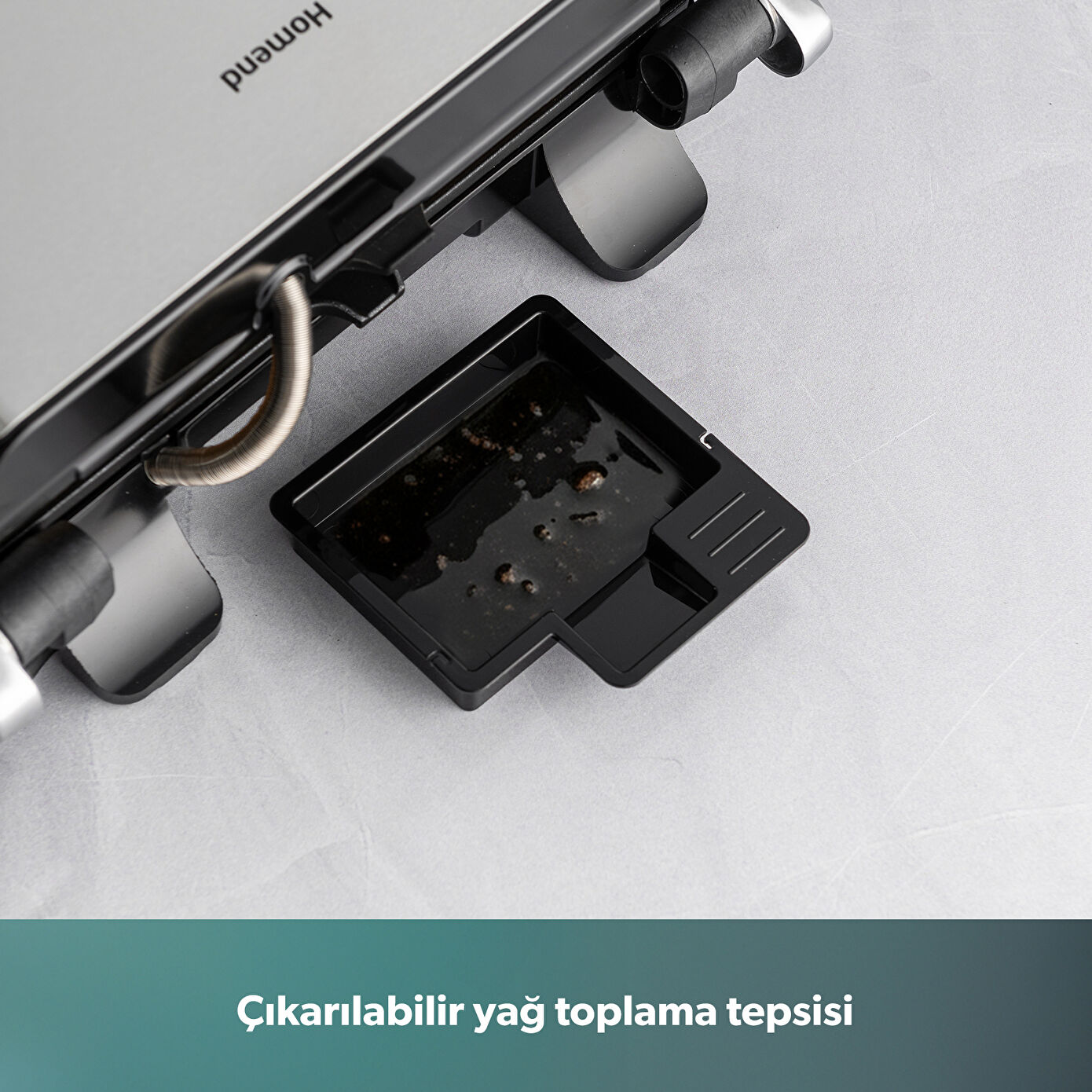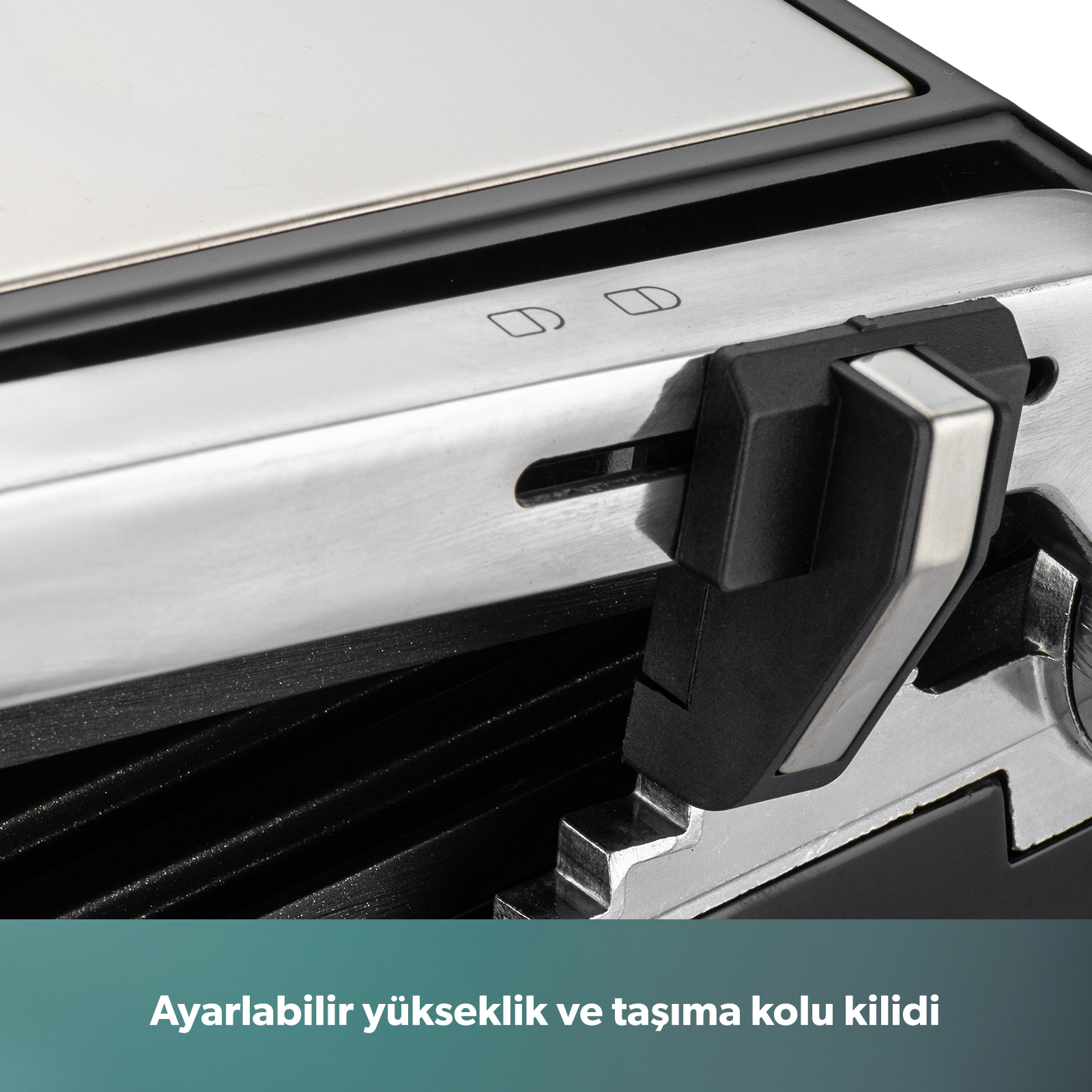 Homend Grilliant 4 Dilim Kapasiteli Gövdeli Döküm Plakalı Tost ve Izgara Makinesi Inox 2000W