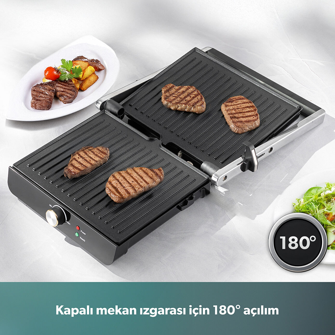 - Elektrikli ızgaranızda sadece ızgara et ve sebze yapmakla kalmazsınız. Kompakt tasarımı ve kaliteli döküm plakaları sayesinde enfes tostlar da yapabilirsiniz.