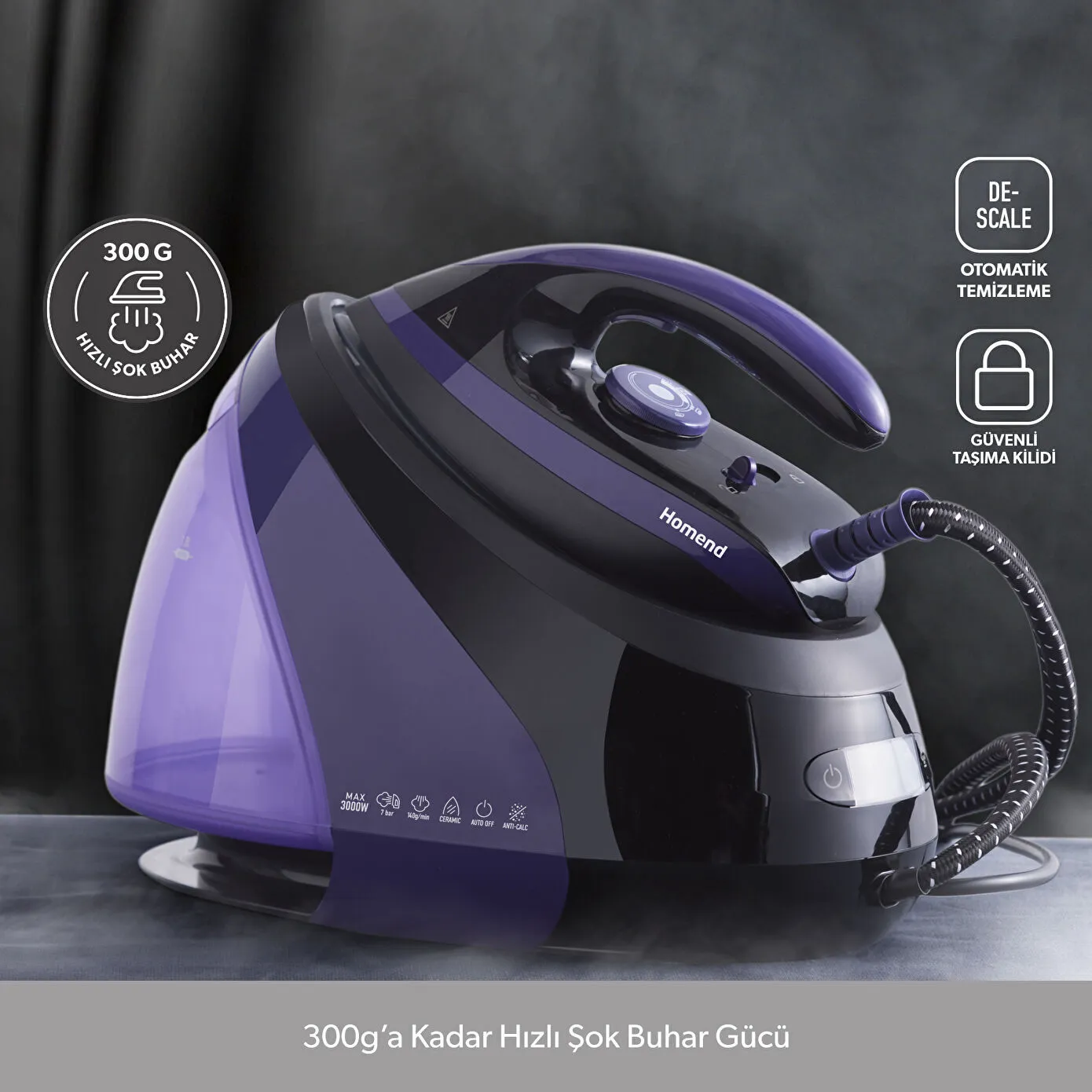 Homend Jetsteam 1173h Buhar Kazanlı Ütü Mor Siyah