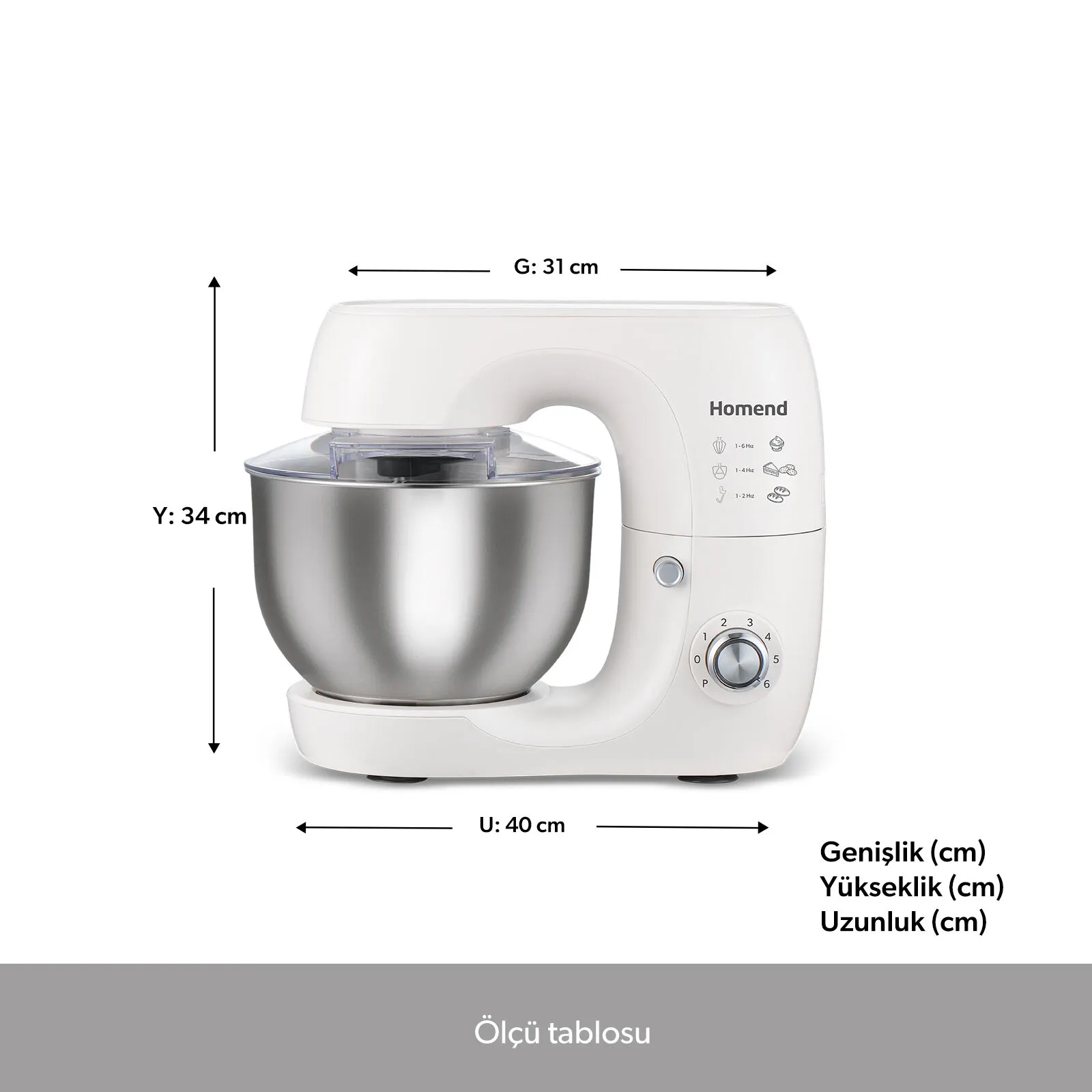 Homend Profashion 3082H Hamur Yoğurma Makinesi Krem 1200W 5,2L