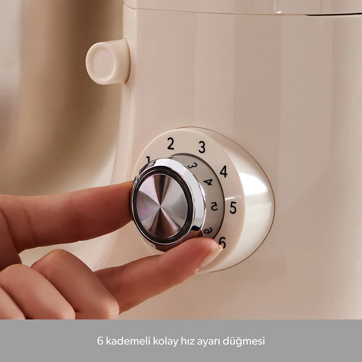 - Stand mikserinizi kullanırken farklı karıştırma hızlarına ihtiyaç duyduğunuzda, kolay hız ayarı düğmesi tam elininizin altında.