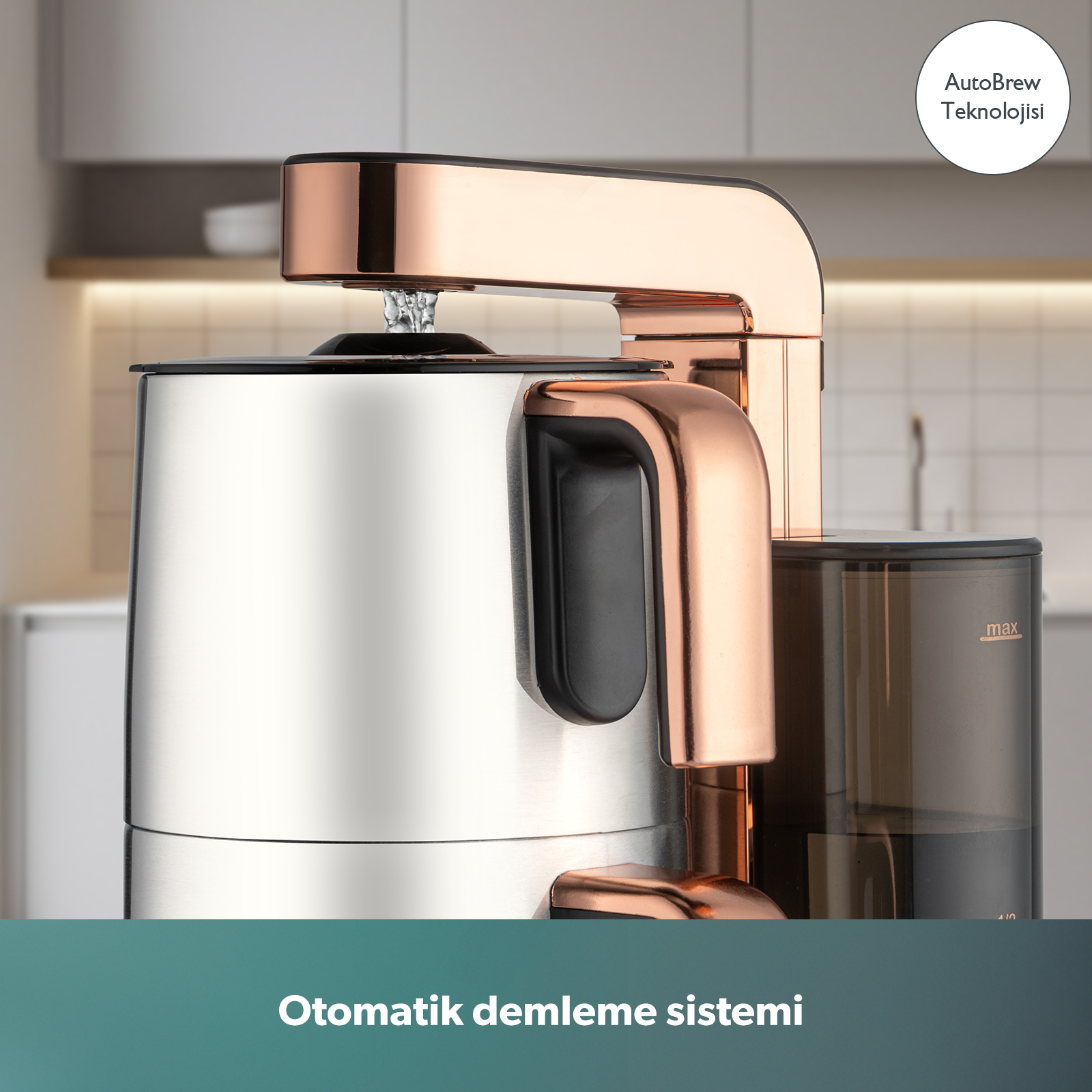 AutoBrew ve Perfect Brew teknolojileriyle, her seferinde aynı lezzeti sunarken; konuşan asistanı, 4 farklı sıcaklık seçeneği ve kullanıcı dostu tasarımıyla çay keyfini yeni bir boyuta taşır.
